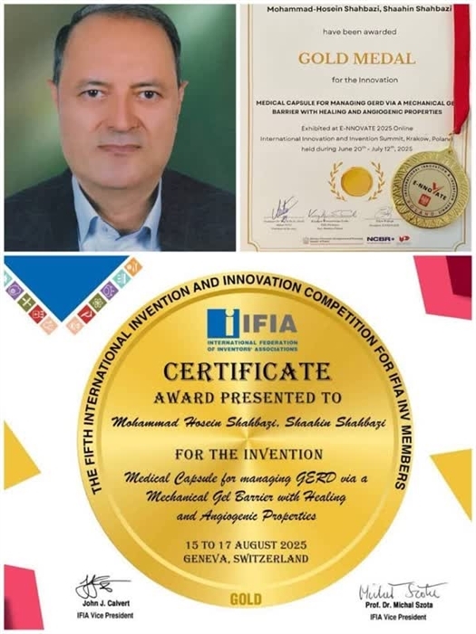 مسابقات انجمن مخترعان سوئیس و نمایشگاه بین اللملی نوآوری و اختراعات لهستان هر ساله با حضور مخترعان و نوآوران برجسته از کشورهای مختلف برگزار میشوند و کسب مدال طلا در این رویدادها، جایگاه برجستهای برای فناوران کشور رقم میزند. دریافت مدال طلا در این رویداد معتبر، بیانگر توانمندی و شایستگی فناوران ایرانی در عرصههای جهانی میباشد. این موفقیت ارزشمند، حاصل تلاشها و نوآوریهای شرکت حامی طب سالم مستقر در مرکز رشد فناوری سلامت دانشگاه علوم پزشکی ایلام، جهت طرح فناورانه تحت عنوان "کپسول دارویی برای درمان رفلاکس معده به روش سد مکانیکال ژلهای با خاصیت ترمیمی و آنژیوژنز" به مدیریت جناب آقای دکتر شاهین شهبازی در حوزه پزشکی است که در رقابت با طرحهای متعدد از کشورهای مختلف جهان به دست آمد.