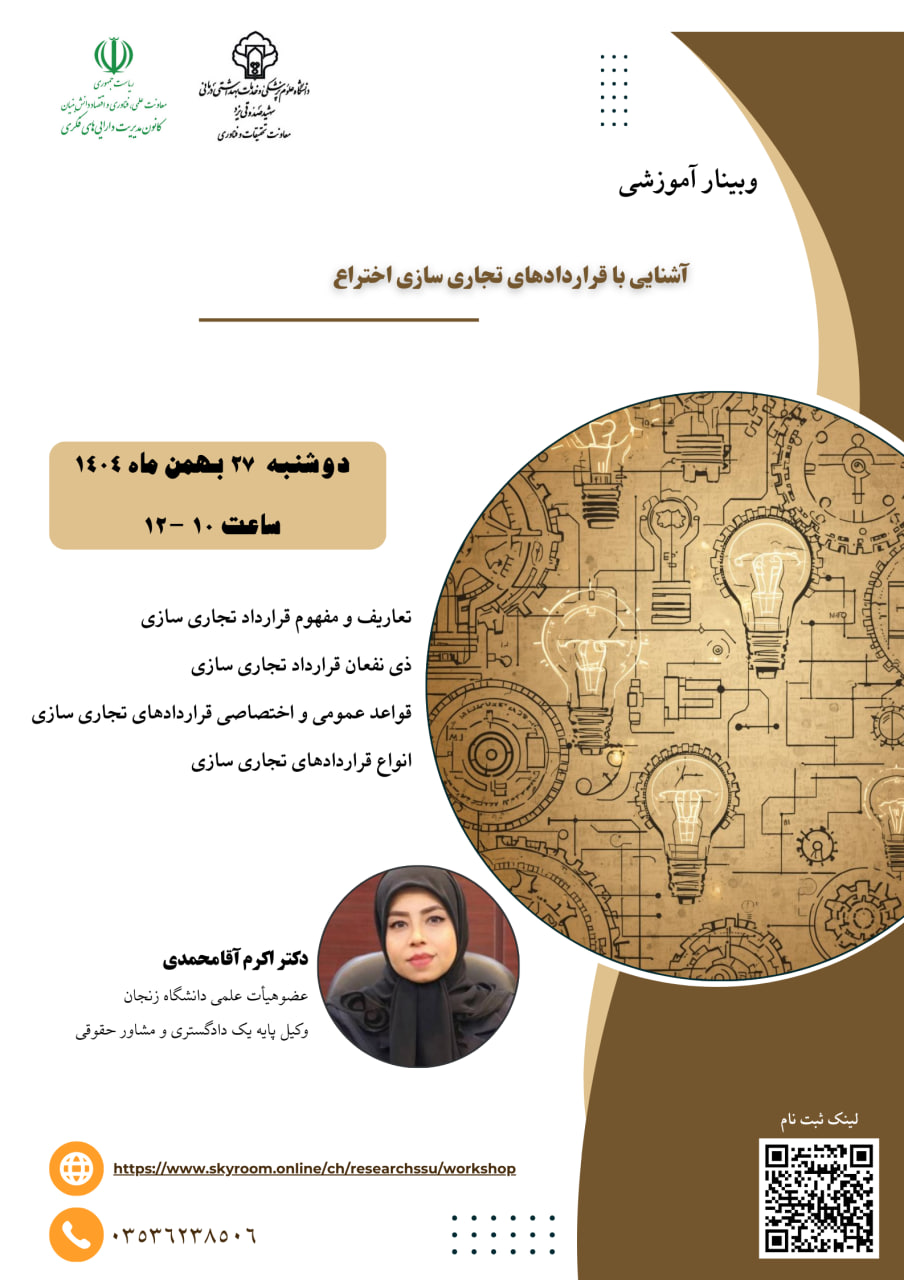 وبینارآموزشی؛ آشنایی با قراردادهای تجاریسازی اختراع دوشنبه 1404/11/27